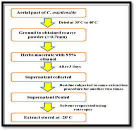 The aerial part of Centella Asiatica is dried at 40°C temperature. Then grind them to make a coarse powder. The herb powder is then macerated with 95% ethanol for three days. Then the supernatant liquid is collected. Put into a proper vessel for evaporation of the solvent. After evaporation, the residual asiaticoside extract is stored at -20°C.